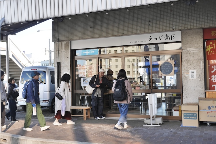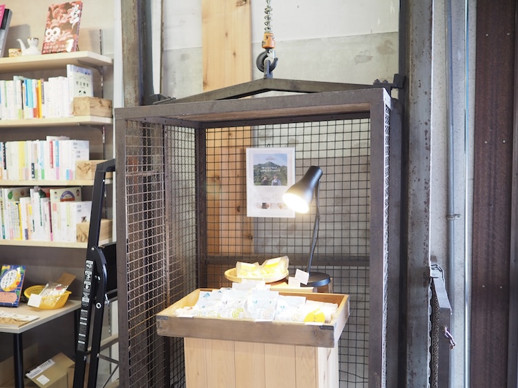 まずは、2月にオープンした本や雑貨のお店「ネコゼ商店」さんへ。ご夫婦でお店を切り盛りされていて、実店舗を持つ前は移動販売車で活動したり、水上ビルの朝市にも出店したりしていたそう。2階はギャラリーになっていて、お店の端っこにある運搬用エレベーターはなんと現役で動くのだとか!