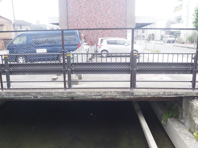ビルの横に橋の欄干があり、川だった名残を感じます。