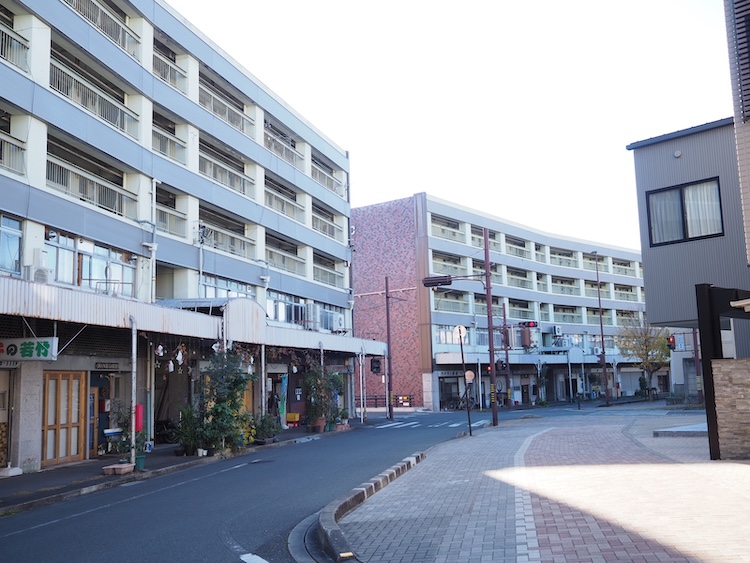 その名の通り、水路の上に建っている全国的にも珍しいビル群で、水路の流れに沿って緩やかにカーブしながら800メートルほど建物が連なっています。