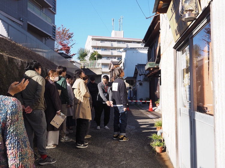 西山に関わり始めたきっかけや芸術祭の背景など、植村さんだからこそ語れるまちの物語を聞きながら歩きます。