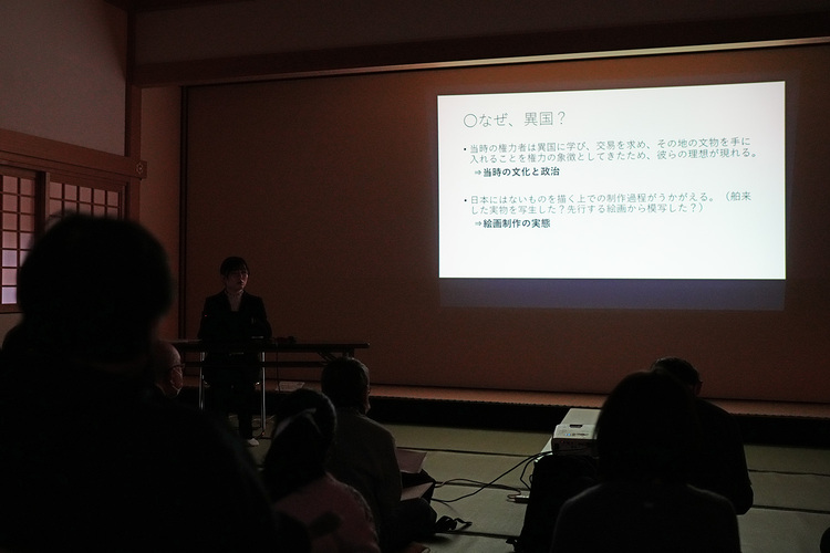 障壁画に描かれた動物や景色について細部まで解説をいただき、参加者のみなさんもこれからどこに注目するといいか、いくつものポイントを押さえられたと思います。ご自身の学生時代からの研究エピソードにもふれられた渡野さんのお話はとても興味深い内容でした。
